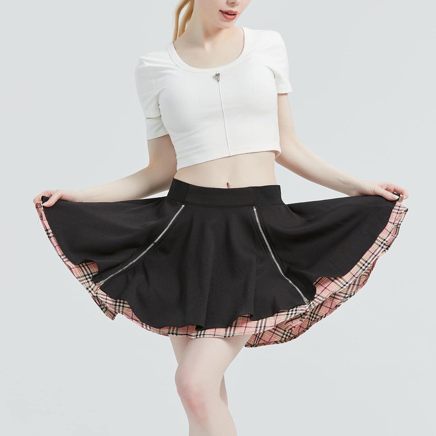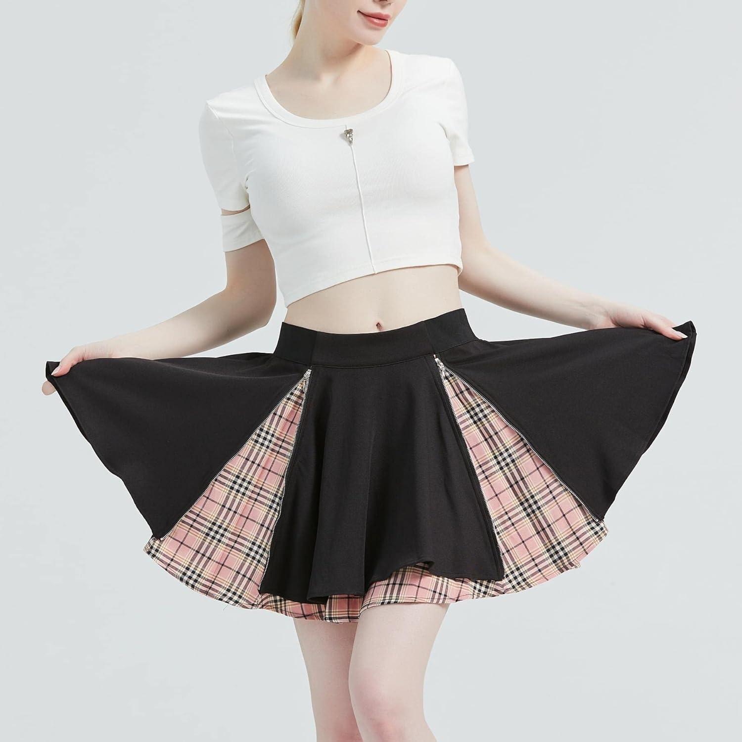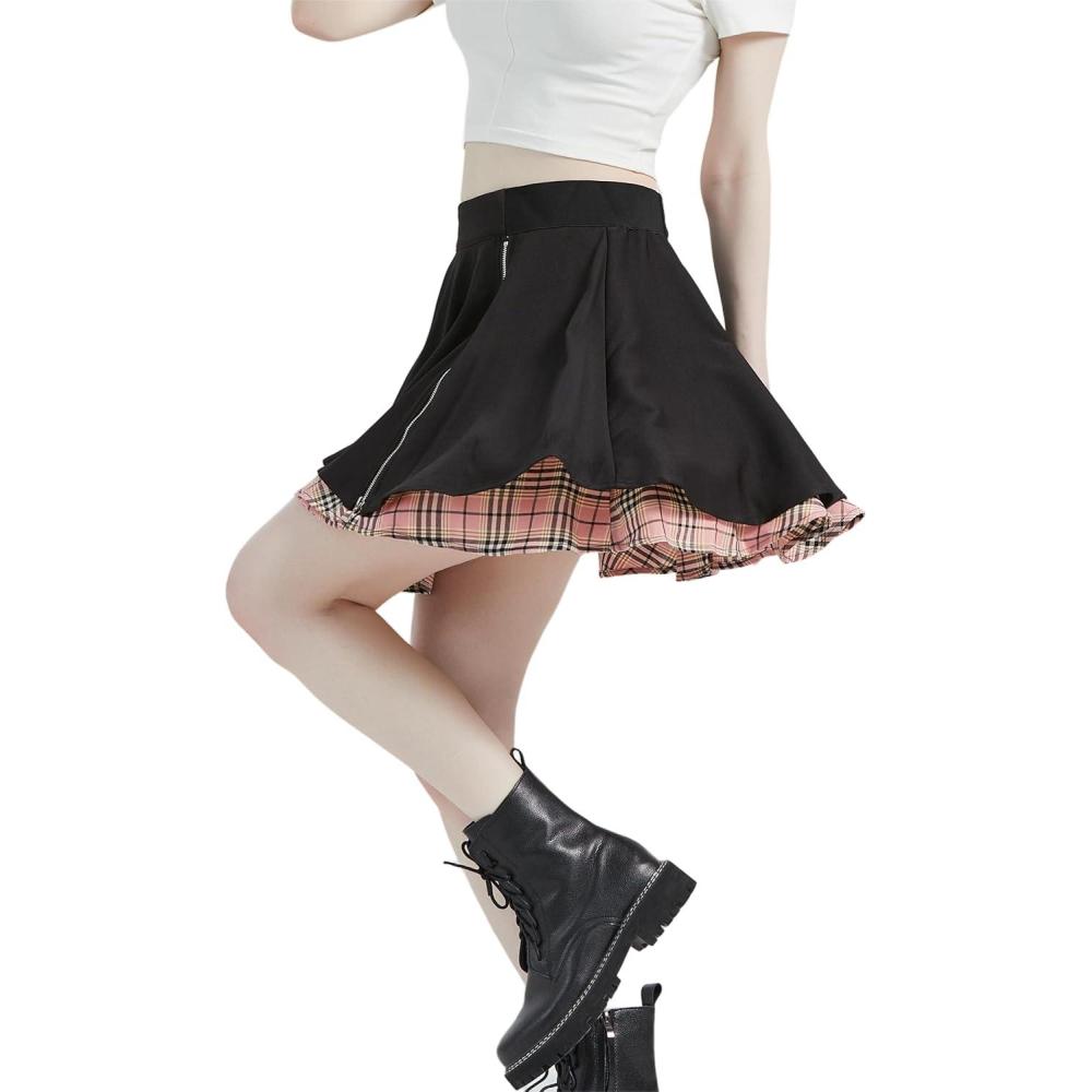 Be the first to review “Kisidoo Gothic Skirts Cute High Elastic Waisted Plaid Kilts for Women Trendy Hem Flared Knee Length Mini Skater Skirt(A# Pink Plaid)”